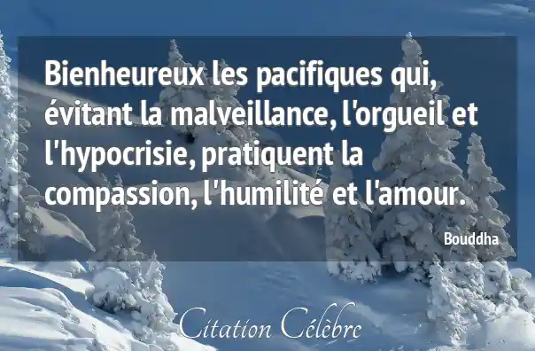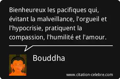Bienheureux les pacifiques qui, évitant la malveillance, l'orgueil et l'hypocrisie, pratiquent la compassion, l'humilité et l'amour.