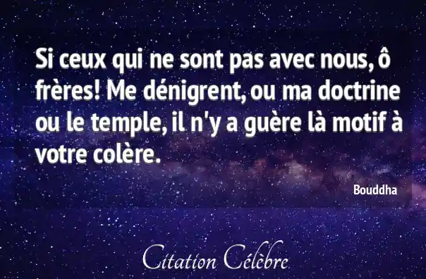 Si ceux qui ne sont pas avec nous, ô frères! Me dénigrent, ou ma doctrine ou le temple, il n'y a guère là motif à votre colère.