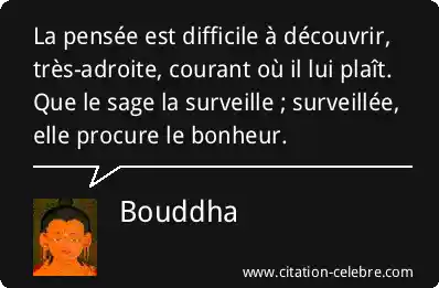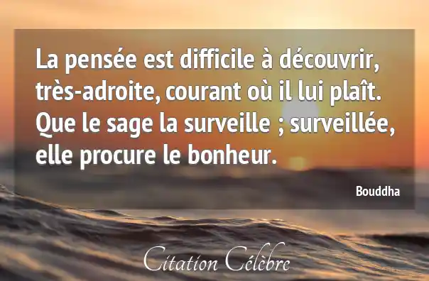 Citation Bouddha bonheur : La pensée est difficile à découvrir, très-adroite, courant où il...
