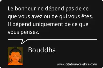 Le bonheur ne dépend pas de ce que vous avez ou de qui vous êtes. Il dépend uniquement de ce que vous pensez.