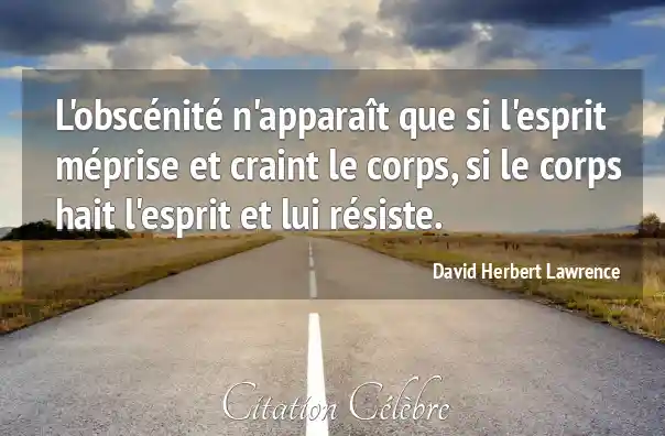 L'obscénité n'apparaît que si l'esprit méprise et craint le corps, si le corps hait l'esprit et lui résiste.