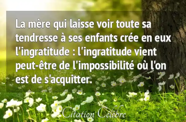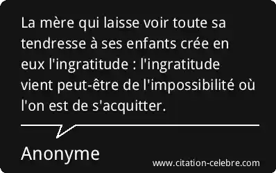 La mère qui laisse voir toute sa tendresse à ses enfants crée en eux l'ingratitude : l'ingratitude vient peut-être de l'impossibilité où l'on est de s'acquitter.