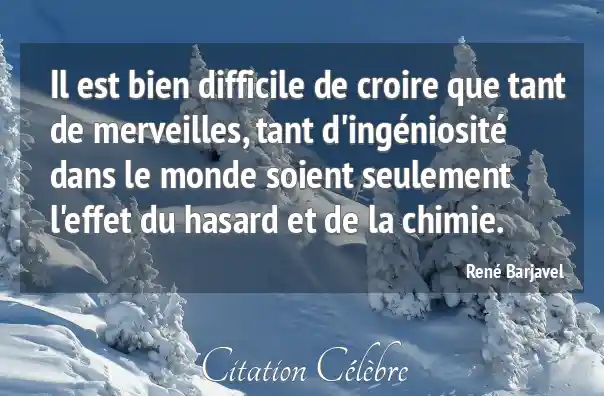 Il est bien difficile de croire que tant de merveilles, tant d'ingéniosité dans le monde soient seulement l'effet du hasard et de la chimie.