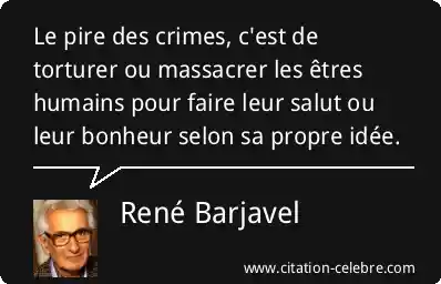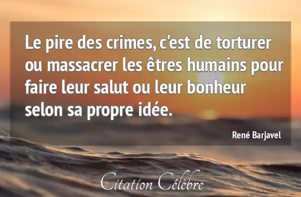 Le pire des crimes, c'est de torturer ou massacrer les êtres humains pour faire leur salut ou leur bonheur selon sa propre idée.