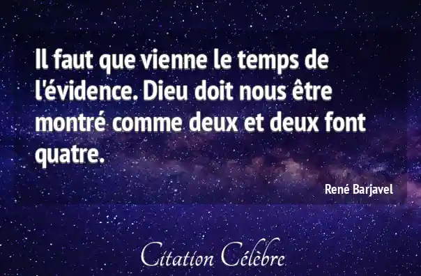 Il faut que vienne le temps de l'évidence. Dieu doit nous être montré comme deux et deux font quatre.