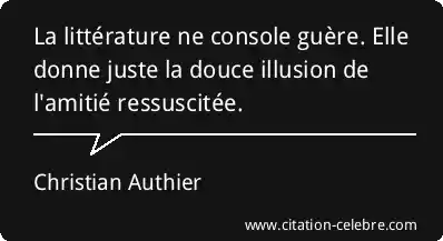 La littérature ne console guère. Elle donne juste la douce illusion de l'amitié ressuscitée.