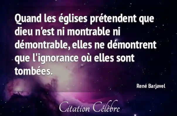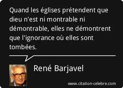Quand les églises prétendent que dieu n'est ni montrable ni démontrable, elles ne démontrent que l'ignorance où elles sont tombées.