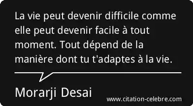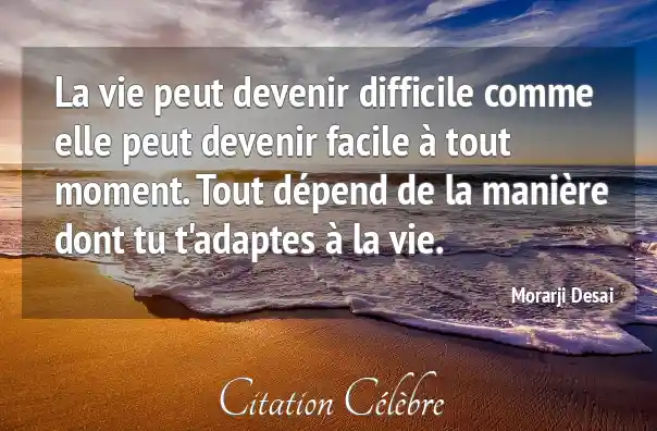 La vie peut devenir difficile comme elle peut devenir facile à tout moment. Tout dépend de la manière dont tu t'adaptes à la vie.