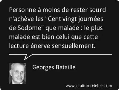 Personne à moins de rester sourd n'achève les "Cent vingt journées de Sodome" que malade : le plus malade est bien celui que cette lecture énerve sensuellement.