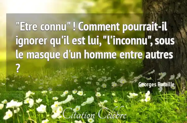 "Etre connu" ! Comment pourrait-il ignorer qu'il est lui, "l'inconnu", sous le masque d'un homme entre autres ?