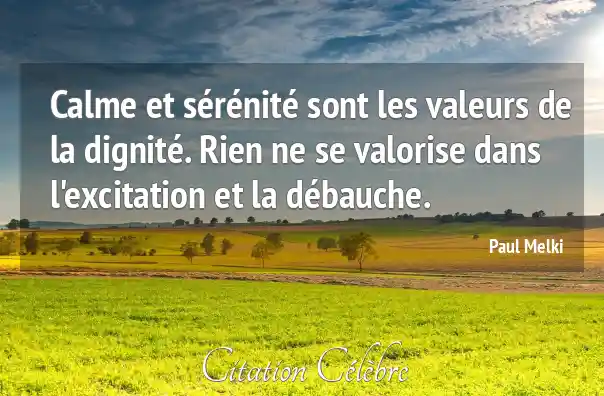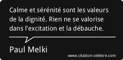 Calme et sérénité sont les valeurs de la dignité. Rien ne se valorise dans l'excitation et la débauche.