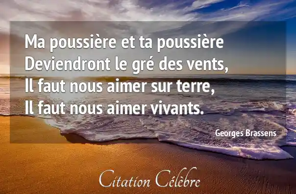 Ma poussière et ta poussièreDeviendront le gré des vents,Il faut nous aimer sur terre,Il faut nous aimer vivants.