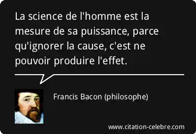 La science de l'homme est la mesure de sa puissance, parce qu'ignorer la cause, c'est ne pouvoir produire l'effet.