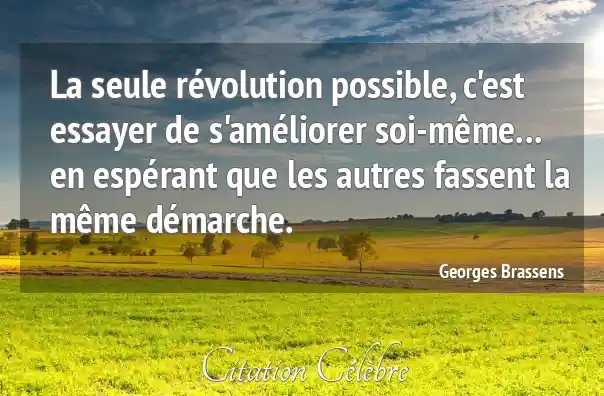 La seule révolution possible, c'est essayer de s'améliorer soi-même... en espérant que les autres fassent la même démarche.
