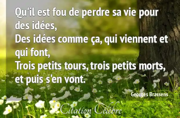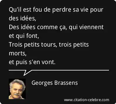 Qu'il est fou de perdre sa vie pour des idées,Des idées comme ça, qui viennent et qui font,Trois petits tours, trois petits morts,et puis s'en vont.