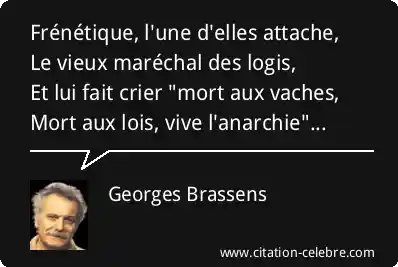 Frénétique, l'une d'elles attache,Le vieux maréchal des logis,Et lui fait crier "mort aux vaches,Mort aux lois, vive l'anarchie"...
