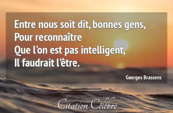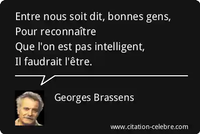 Entre nous soit dit, bonnes gens,Pour reconnaîtreQue l'on est pas intelligent,Il faudrait l'être.