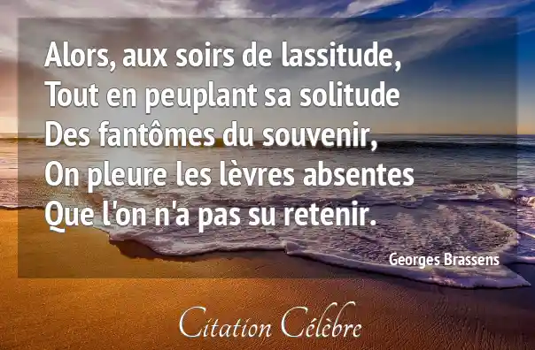 Alors, aux soirs de lassitude,Tout en peuplant sa solitudeDes fantômes du souvenir,On pleure les lèvres absentesQue l'on n'a pas su retenir.