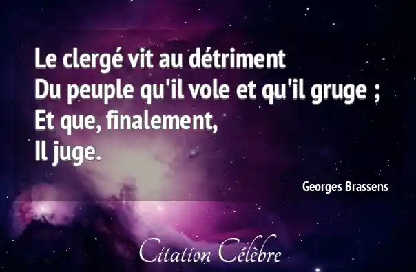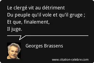 Le clergé vit au détrimentDu peuple qu'il vole et qu'il gruge ;Et que, finalement,Il juge.