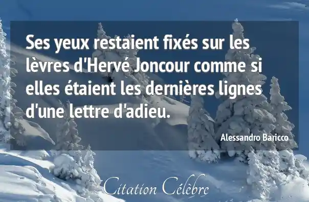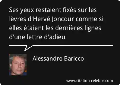 Ses yeux restaient fixés sur les lèvres d'Hervé Joncour comme si elles étaient les dernières lignes d'une lettre d'adieu.