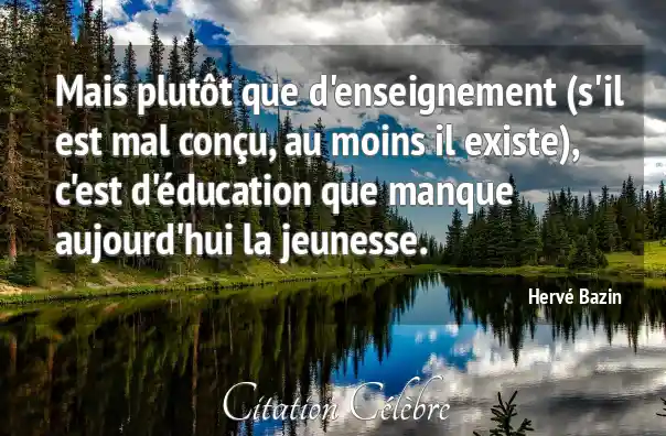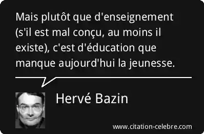 Mais plutôt que d'enseignement (s'il est mal conçu, au moins il existe), c'est d'éducation que manque aujourd'hui la jeunesse.