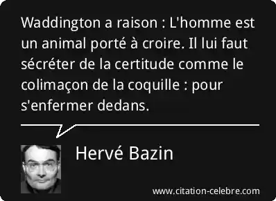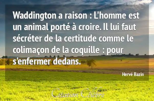 Waddington a raison : L'homme est un animal porté à croire. Il lui faut sécréter de la certitude comme le colimaçon de la coquille : pour s'enfermer dedans.