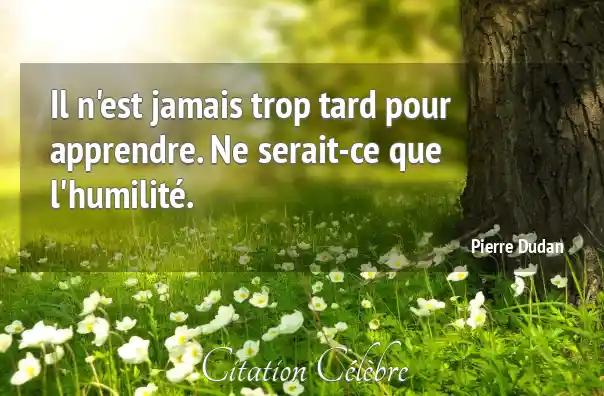 Il n'est jamais trop tard pour apprendre. Ne serait-ce que l'humilité.