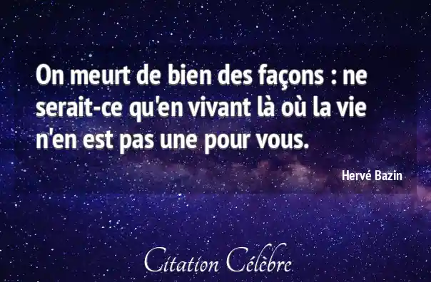 On meurt de bien des façons : ne serait-ce qu'en vivant là où la vie n'en est pas une pour vous.