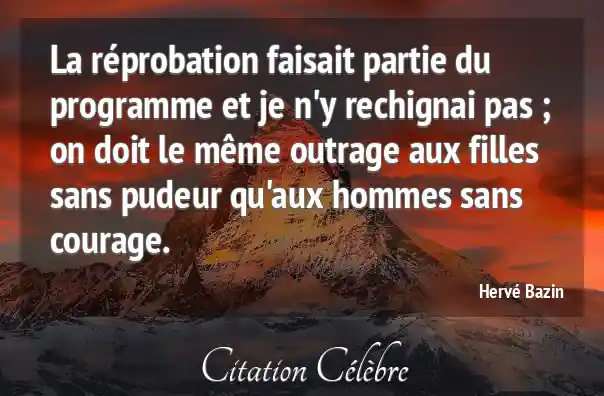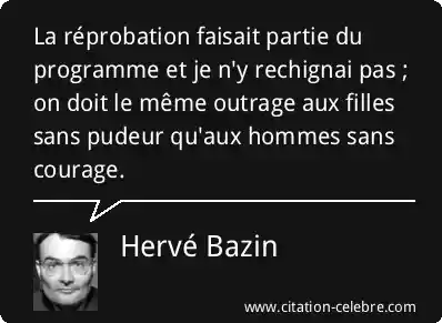La réprobation faisait partie du programme et je n'y rechignai pas ; on doit le même outrage aux filles sans pudeur qu'aux hommes sans courage.