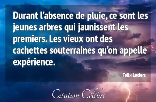 Durant l'absence de pluie, ce sont les jeunes arbres qui jaunissent les premiers. Les vieux ont des cachettes souterraines qu'on appelle expérience.