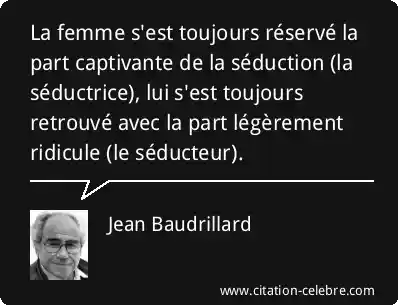 La femme s'est toujours réservé la part captivante de la séduction (la séductrice), lui s'est toujours retrouvé avec la part légèrement ridicule (le séducteur).