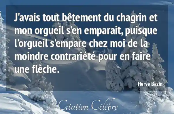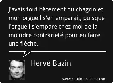 J'avais tout bêtement du chagrin et mon orgueil s'en emparait, puisque l'orgueil s'empare chez moi de la moindre contrariété pour en faire une flèche.