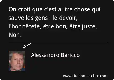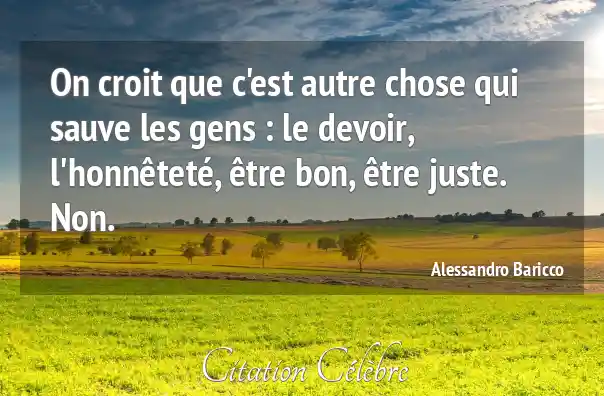 On croit que c'est autre chose qui sauve les gens : le devoir, l'honnêteté, être bon, être juste. Non.