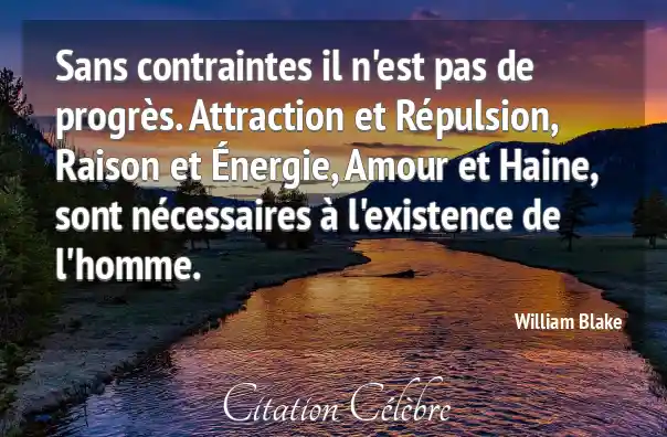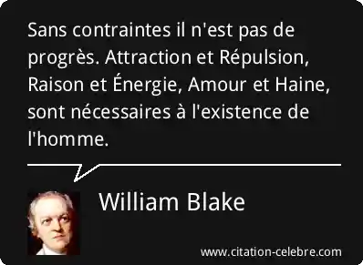 Sans contraintes il n'est pas de progrès. Attraction et Répulsion, Raison et Énergie, Amour et Haine, sont nécessaires à l'existence de l'homme.