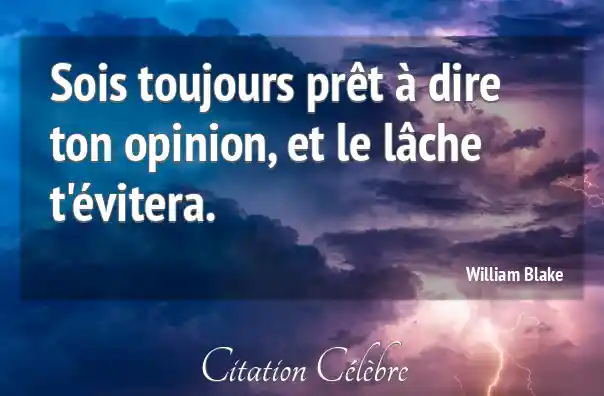 Sois toujours prêt à dire ton opinion, et le lâche t'évitera.
