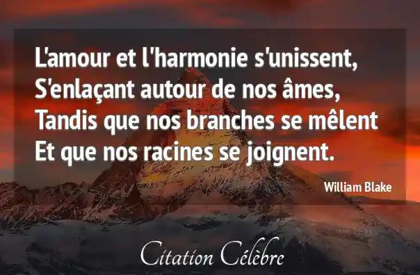 L'amour et l'harmonie s'unissent,S'enlaçant autour de nos âmes,Tandis que nos branches se mêlentEt que nos racines se joignent.