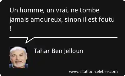 Un homme, un vrai, ne tombe jamais amoureux, sinon il est foutu !