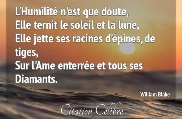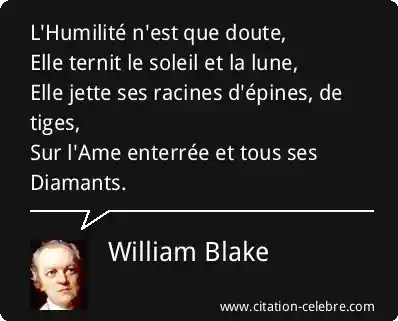 L'Humilité n'est que doute,Elle ternit le soleil et la lune,Elle jette ses racines d'épines, de tiges,Sur l'Ame enterrée et tous ses Diamants.