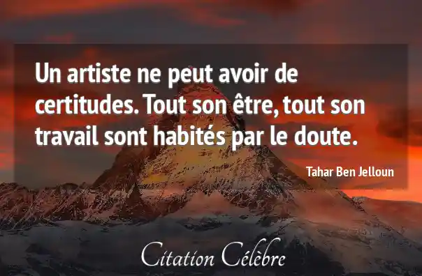 Un artiste ne peut avoir de certitudes. Tout son être, tout son travail sont habités par le doute.