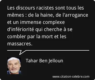 Les discours racistes sont tous les mêmes : de la haine, de l'arrogance et un immense complexe d'infériorité qui cherche à se combler par la mort et les massacres.