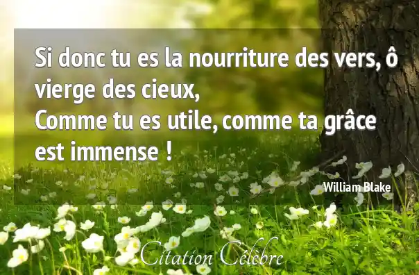 Si donc tu es la nourriture des vers, ô vierge des cieux,Comme tu es utile, comme ta grâce est immense !