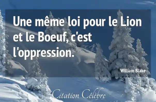 Une même loi pour le Lion et le Boeuf, c'est l'oppression.