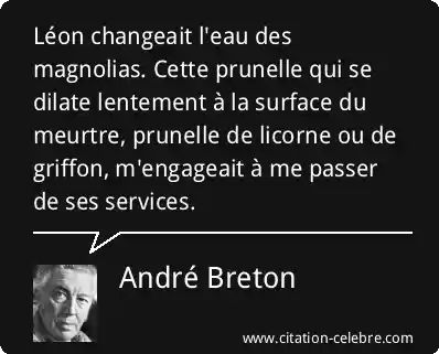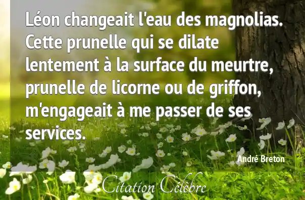Léon changeait l'eau des magnolias. Cette prunelle qui se dilate lentement à la surface du meurtre, prunelle de licorne ou de griffon, m'engageait à me passer de ses services.