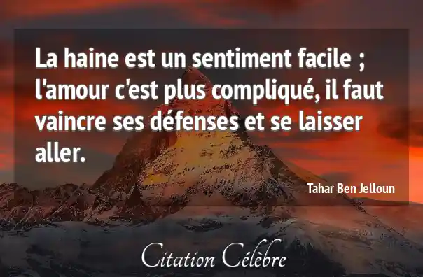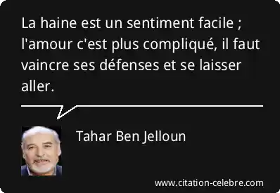 La haine est un sentiment facile ; l'amour c'est plus compliqué, il faut vaincre ses défenses et se laisser aller.