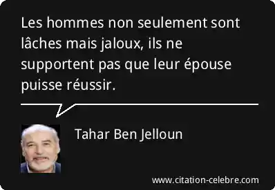 Les hommes non seulement sont lâches mais jaloux, ils ne supportent pas que leur épouse puisse réussir.