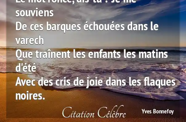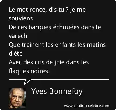 Le mot ronce, dis-tu ? Je me souviensDe ces barques échouées dans le varechQue traînent les enfants les matins d'étéAvec des cris de joie dans les flaques noires.