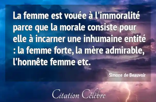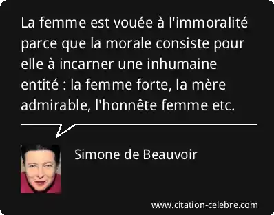 La femme est vouée à l'immoralité parce que la morale consiste pour elle à incarner une inhumaine entité : la femme forte, la mère admirable, l'honnête femme etc.