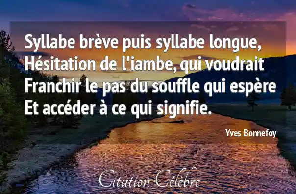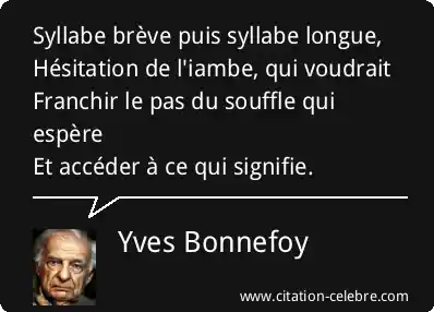 Syllabe brève puis syllabe longue,Hésitation de l'iambe, qui voudraitFranchir le pas du souffle qui espèreEt accéder à ce qui signifie.