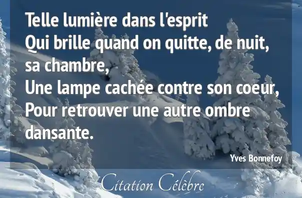 Telle lumière dans l'espritQui brille quand on quitte, de nuit, sa chambre,Une lampe cachée contre son coeur,Pour retrouver une autre ombre dansante.