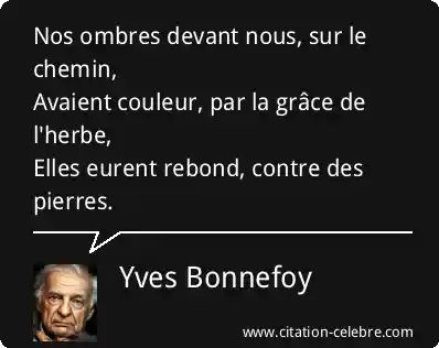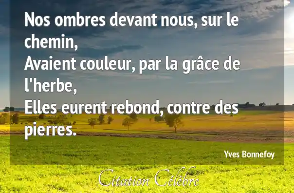 Nos ombres devant nous, sur le chemin,Avaient couleur, par la grâce de l'herbe,Elles eurent rebond, contre des pierres.